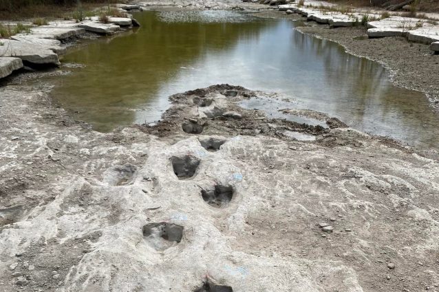 Le impronte lasciate da un acrocantosauro sono riemerse dal più grande bacino idrico del Texas, il fiume Paluxy, prosciugato quasi completamente da caldo record e siccità.