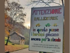Il cartello, che invita gli automobilisti a fare attenzione, si trova nel comune di San Gregorio nelle Alpi, in provincia di Belluno ed è stato realizzato dagli alunni di una scuola primaria. Condiviso su Facebook, è diventato virale.