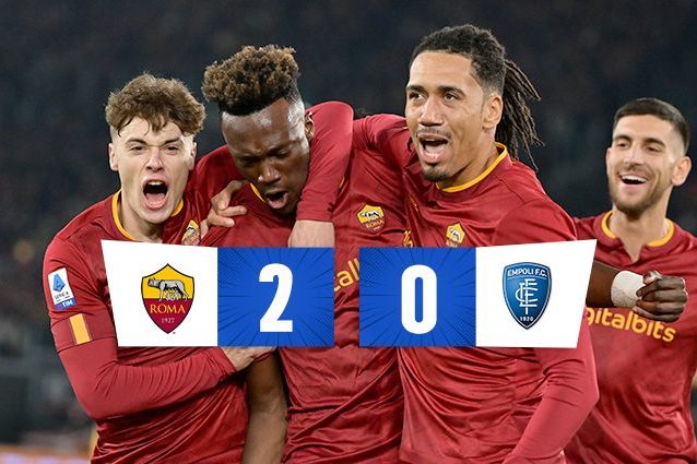 La Roma batte l’Empoli e aggancia momentaneamente l’Inter: decisivi i gol di Ibanez e Abraham Ultimissime Calcio, Empoli, News, Roma, Serie A 4 Febbraio 2023 La Roma non sbaglia e contro l'Empoli all'Olimpico dimentica le sconfitte contro il Napoli in campionato e soprattutto contro la Cremonese in Coppa Italia battendo l'Empoli 2-0 in casa. Decisivi i gol di Ibanez e Abraham.Continua a leggere