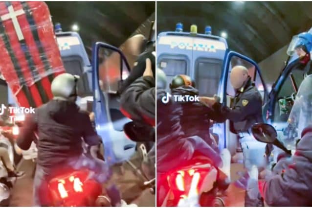 Napoletani in moto con la bara anti-Milan: il poliziotto reagisce con durezza Ultimissime Cronaca, News 19 Aprile 2023 Un tifoso del Napoli in giro sul motorino con una bara con i colori del Milan, tra le vetture ferme nel traffico: un poliziotto scende e reagisce con fermezza.Continua a leggere