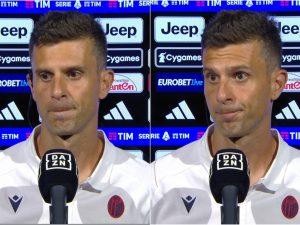 La protesta di Thiago Motta per il rigore negato al Bologna: resta in silenzio durante l’intervista