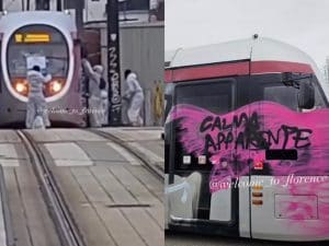 Alcuni giovani con il volto coperto hanno bloccato un tram a Firenze e lo hanno imbrattato con vernice spray. Il conducente è stato costretto a fermare la corsa e a far scendere i passeggeri. Non ci sono state rivendicazioni ma si sospettano gruppi dell'area dell'antagonismo sociale.