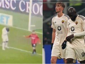 Lukaku scoraggiato in area è lo specchio del momento della Roma: Reijnders ride in faccia a Celik