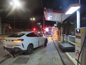 Bmw senza controllo distrugge distributore e si schianta su auto: 5 feriti, uno è grave. A bordo anche neonata