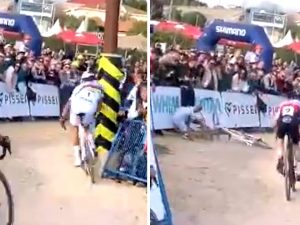 A Benidorm, in Spagna, si è corsa la 13ª manche di Coppa del Mondo di cross dove è accaduto di tutto nella sfida tra due fenomeni assoluti, Wout van Aert e Mathieu Van der Poel. L'iridato è stato autore prima di una pazzesca rimonta, per poi schiantarsi su un palo. Van Aert ha vinto ma arrivando al traguardo senza sella.