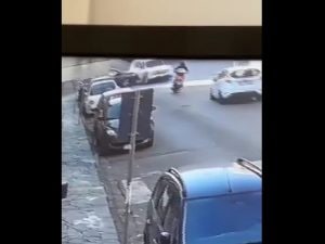 Lo scontro a Torre Annunziata, nella provincia di Napoli: l'incidente è stato immortalato dalle telecamere di sorveglianza in strada.