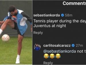 Carlos Alcaraz sui social ha mostrato di avere un di discreto talento anche con i piedi. I palleggi effettuati a Indian Wells hanno portato tanti commenti, compreso quello di Sebastian Korda che ha tirato in ballo l'omonimo centrocampista della Juventus.