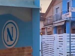 Un'intera villetta a due piani, dipinta di azzurro con tanto di maxi logo del Napoli all'ingresso, fa bella mostra in un quartiere residenziale di Brescia. "Un omaggio alla mia terra. Il mio vicino è milanista, sarebbe bello se facesse la casa rossonera"