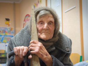 Lidia Stepanivna Lomikovska, 98 anni, è fuggita dal suo villaggio dopo l'arrivo dei russi con indosso solo un paio di pantofole. L'anziana ha percorso 10 km prima di essere individuata dalle forze dell'ordine ucraine ed essere riunita ai suoi familiari, dai quali si era separata durante la fuga.