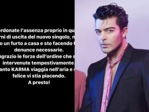 Ladri a casa di Stash dei The Kolors: “Perdonate l’assenza ho subito un furto” Ultimissime Musica e Cultura, News 8 Maggio 2024 Stash dei The Kolors si è scusato con i fan per un periodo di assenza social dovuto a un furto in casa: la band sta promuovendo l'ultima canzone uscita, Karma.Continua a leggere