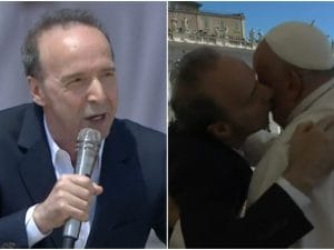 Roberto Benigni intrattiene Piazza San Pietro dopo l'Angelus del Papa. Il celebre attore premio Oscar ha baciato Papa Francesco nonostante il divieto, poi ha recitato un lungo monologo rivolto ai bambini, "capaci di poter cambiare il mondo".
