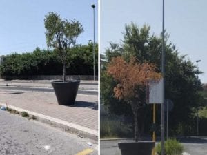 II Comune di Roma aveva posizionato trenta alberi in vaso per fare ombra ai cittadini e ai turisti durante le attese alle fermate del bus. Alcuni di questi, però, si sono seccati, complici le temperature estreme degli ultimi giorni.