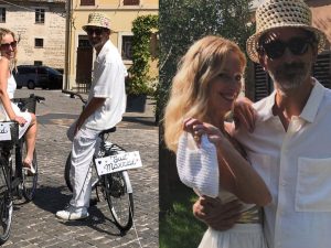 Fabrizio Biggio e la moglie Valentina de Ceglie hanno rinnovato le promesse dopo dieci anni di matrimonio: una cerimonia intima con figli e pochi amici seguita da una passeggiata in bicicletta in look total white. Continua a leggere